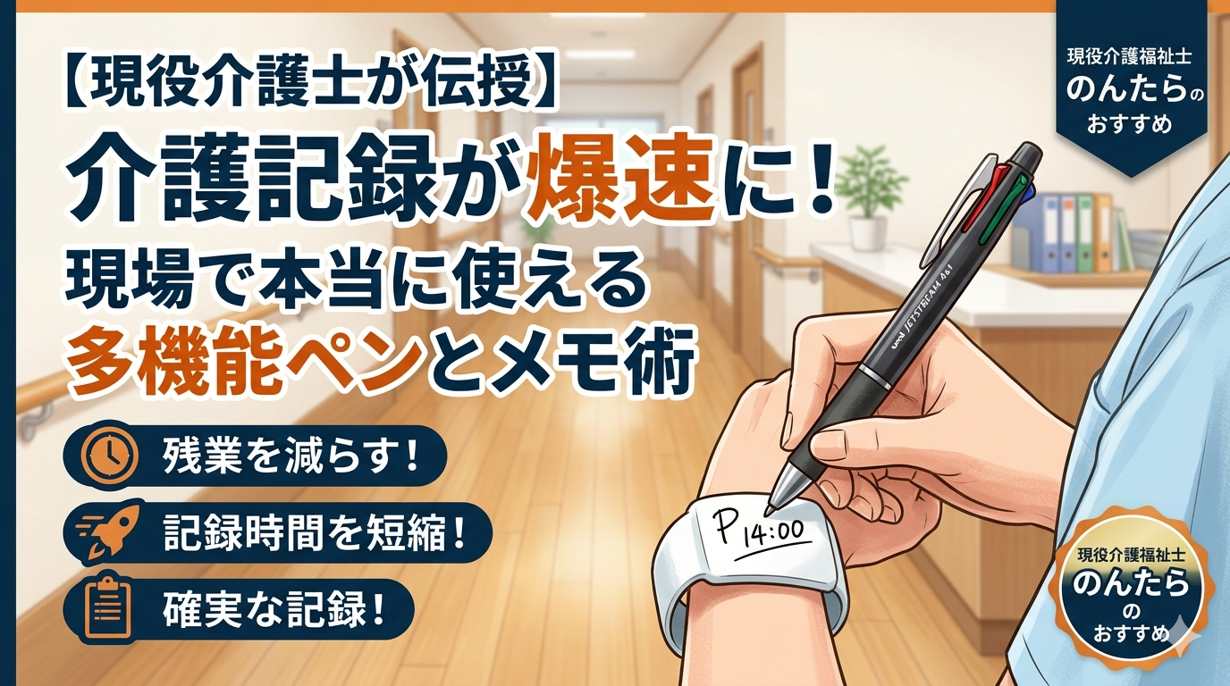 今回は、数々の文房具を使い倒してきた現役介護福祉士の私が、「これに変えてから残業が減った!」と確信した最強の多機能ペンと、爆速メモ術をセットでご紹介します。