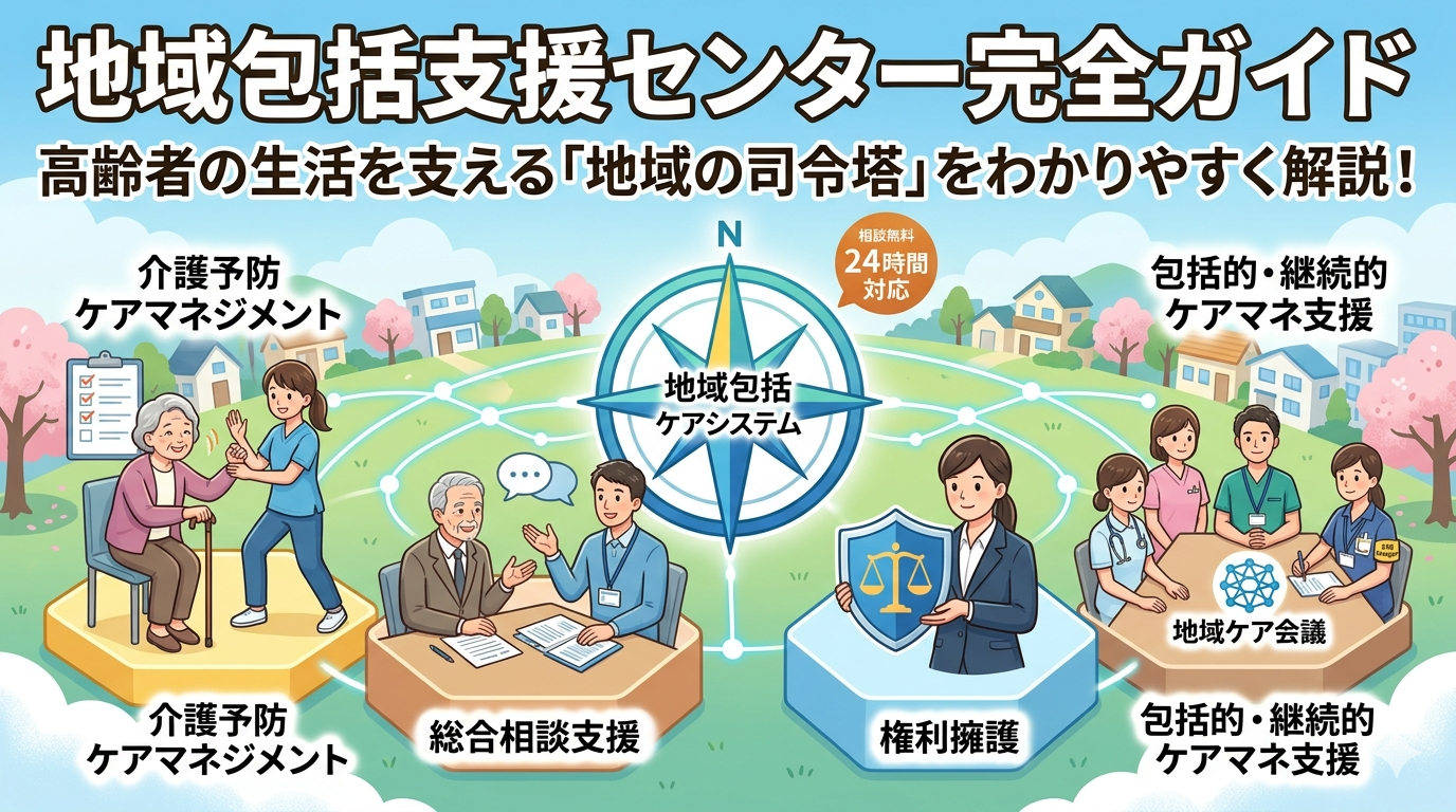 「地域包括支援センター」という言葉、福祉の勉強をしていると必ず出てきますが、中身が複雑で少し敬遠したくなりますよね。