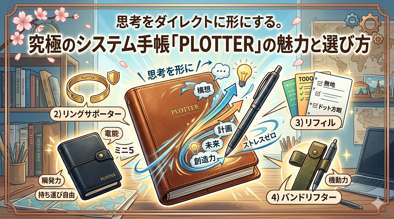 世の中には多くのシステム手帳がありますが、プロッターを選ぶ理由は、その「ストイックなまでの機能美」にあります。