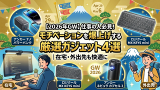 ガジェット 【ゴールデンウィーク仕事組必見】頑張るあなたを支える!おすすめ最新ガジェット特集❤ 2026年のゴールデンウィーク、お仕事の方へ。連休中の勤務を「あえて楽しむ」ための最新ガジェットを厳選。超軽量バッテリーから疲れ目対策のモニターライトまで、仕事環境をアップデートして連休を乗り切りましょう。 2025.04.30 ガジェット