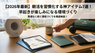 おすすめグッズ 【2026年版】早起きが楽しみになる!朝活の質を上げるおすすめ神アイテム7選 朝活が続かないのは根性がないからではありません。環境が整っていないだけかも?2026年最新版として、光目覚まし時計やポモドーロタイマー、最新Kindleなど、実際に使って良かった「朝の質を劇的に変えるアイテム」を7つ厳選。早起きを楽しみな自分時間に変えるコツをご紹介します。 2025.05.03 おすすめグッズ