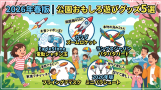 2026年春の行楽に!いつもの公園遊びを劇的に楽しくする最新おもちゃ5選を紹介。最大飛距離45mのロケットや本物の鳥のように飛ぶラングスジャパンなど、広場で親子で思いっきり体を動かせるアイテムを厳選。紫外線対策テントと合わせて、春の公園デビューを完璧に!